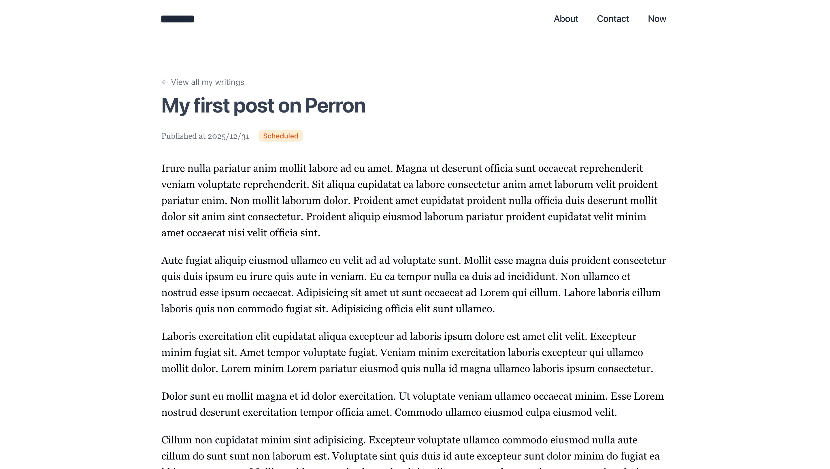 Just run the template command in your new Perron-powered site to get writing (and publishing) right away.