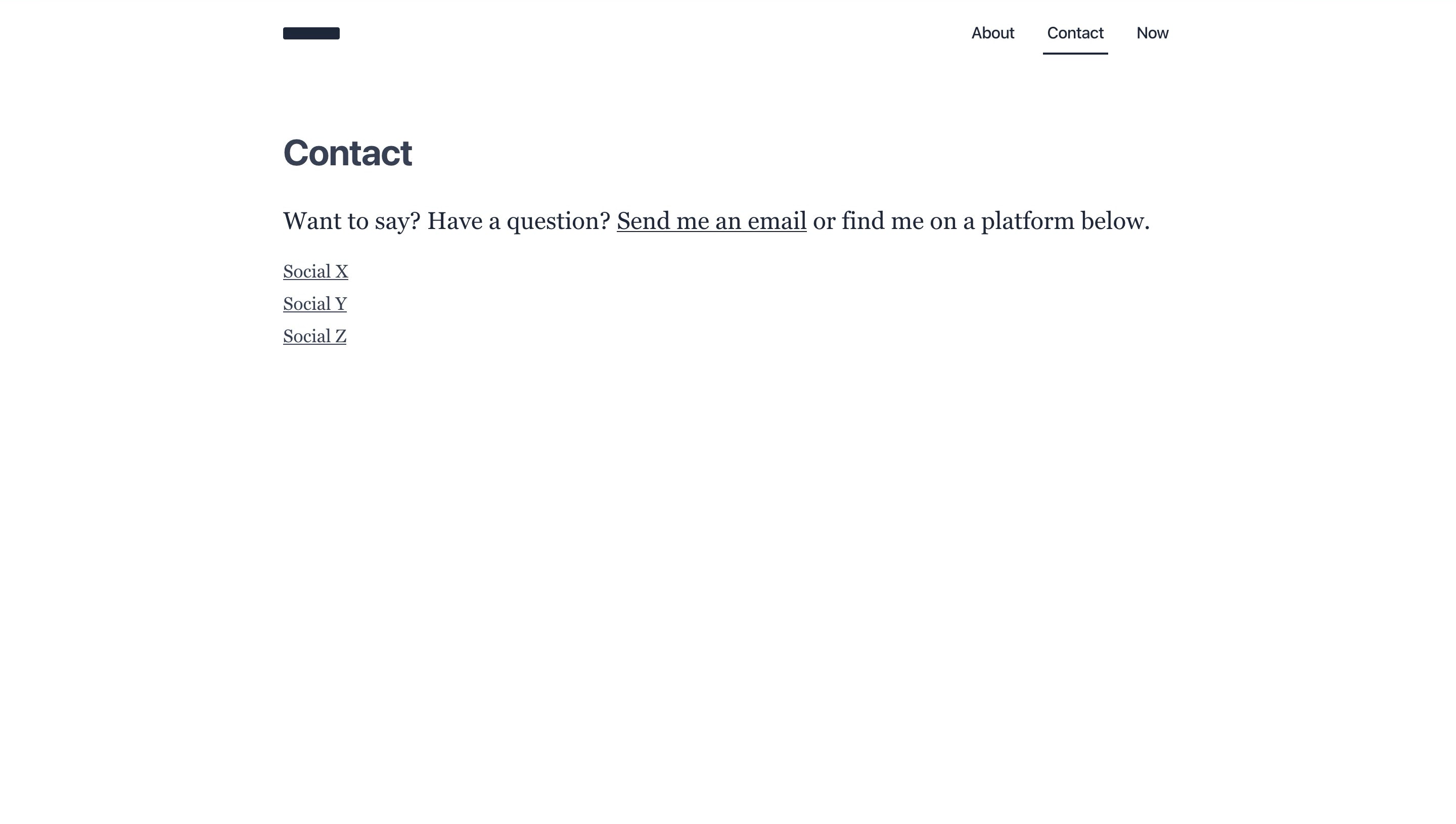 This template for a minimal and stylish personal blog is designed with Tailwind CSS. It features static pages, like about and contact. And next to that a Content::Post